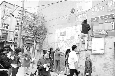 5月9日,市中区垎塔埠办事处光兴里小区组织社区工作人员,对解放组团、明珠花园和光兴里小区辖区内的小广告进行大扫除,净化了辖区的环境卫生。