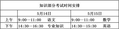 我省春季高考实行“知识+技能”考试模式,由省统一命题,统一组织考试。考试分为“知识”和“技能”两部分。“知识”部分考试科目为语文、数学、英语、专业知识。各科满分分值为:语文、数学各120分,英语80分,专业知识200分。