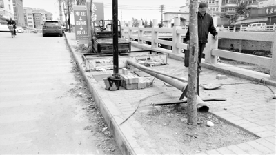 根据吴女士的反映,记者随后沿着东沙河来到香港街附近,在河西岸看到了一个破损严重的三轮车停在人行道上,在三轮车南侧有一个“躺”在地上的铁架子,走近后发现这副铁架子应该是一个废弃的广告牌,广告牌上还残留一些风化破碎的布条,这两件废品放在人行道上,基本上占据了整个人行道。靠近三轮车后,记者看到三轮车已经锈迹斑斑,应该是长时间停放,风吹日晒所致。附近形成了很多卫生死角,环境有些脏乱。“废弃的物品应该及时处理掉,如果长时间不处理的话,既影响环境而且会越来越没有价值。”附近一位居民告诉记者。