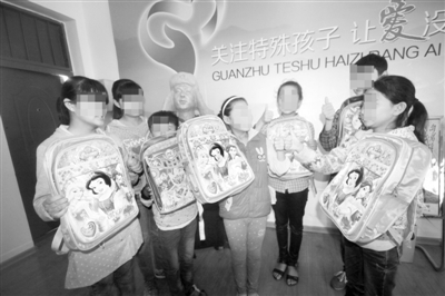 5月12日,枣庄学雷锋志愿者联合会滕州分会慈善医院服务队的学雷锋志愿者购买了学习用品,并带着医疗设备到滕州市特殊教育学校,为残疾学生送去了新书包,并为他们检查身体。 (特约记者 侯志龙 摄)