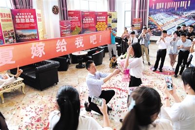 5月22日,省城小伙姜先生从济南乘坐高铁来到枣庄薛城区,在万洲浙商城精心策划向女友张女士求婚。两人网上相识两年,当天在朋友同事的祝福下求婚成功。