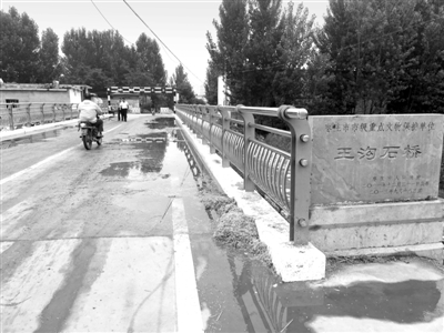 近日,记者再次赶往“王沟石桥”看到,小桥已经是旧貌换新颜了。小桥的桥基由钢板打造,桥头安装了车辆限高架。小桥两边全部安装上铁栏杆护栏,以防止行人不慎掉落河中。小桥中间设置了路面隔离线清晰可见。