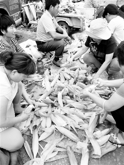 眼下,正是玉米成熟的季节,刚从地里掰下的玉米又鲜又嫩,深受市民欢迎,大的一元一个,小的三到八毛钱不等。市中区利民市场上卖玉米的摊位一个挨着一个,每个摊位前都人员爆满。 (记者 孙慧英 摄)
