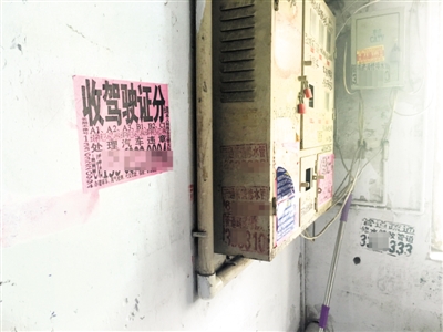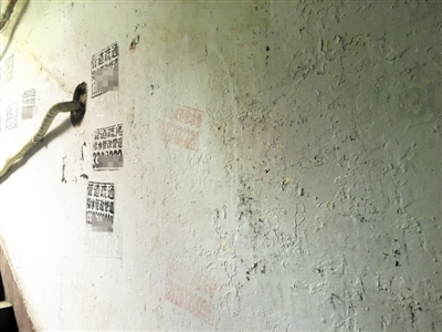 16日,记者来到刘女士所居住的小区66号楼西单元,进入单元楼后,记者看到一楼和二楼的楼道墙面明显是新粉刷的,不过由于粉刷前广告张贴严重,墙壁上仍有不少广告印痕。记者接着往上走,在二楼右手边就是该单元的电表箱,贴小广告者也没有放过这块地方,电表箱上有五张小广告,内容或是搬家保洁或是空调维修。沿着楼梯向上走,在每户的门旁边也贴有十余个小广告,在入户门附近的小广告不同于张贴于电表箱的小广告,这些小广告都是印到墙上的,“粘贴的小广告还能撕下来,这印上去的小广告只能是重新喷漆盖上了。”一住户指着门口的小广告说道。