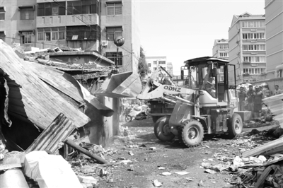 晚报讯 (记者 王龙飞 通讯员 张超 李甜 摄影报道)近日,有不少市民反映,市中区金华市场南侧一废品收购站,因天热废品长期堆放,气味十分刺鼻。随后,记者将此情况反映给了该区域所在的垎塔埠街道。日前,该街道工作人员对该废品回收站进行了整治。据现场的工作人员介绍,该废品站属于私占空地,并私自搭建棚子等违章建筑,对周围居民的正常生活造成了一定的影响,遂依照相关规定对其进行了取缔。