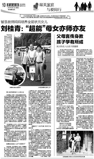 “有其母必有其女”这句话用在刘桂青老师及女儿梁潇雨身上一点也不为过。三尺讲台,二十载春秋,刘桂青老师在钟爱的岗位上默默的付出换来了诸多荣誉及表彰。而女儿青出于蓝胜于蓝——2015年高考理科状元、德智体全面发展、逢赛必获奖的“小学霸”。