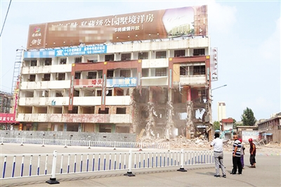 晚报讯 (记者 姚付林 摄影报道)10日,荆河东路(鲁南机床厂)区域“老地标”文昌大楼拆除工作顺利完成。鲁南机床厂又一次进入了人们关注的“视野”。