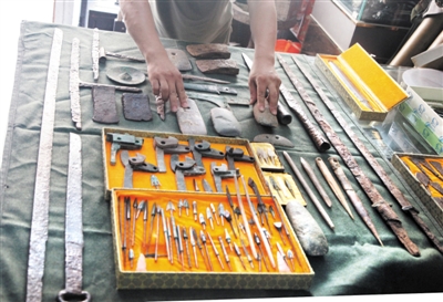 后来,得到了妻子的支持和理解,王其龙对军事物品的收藏便一发而不可收拾。收藏让他认识了更多的朋友,了解了更多的军事知识,知道了更多的战争意义,收藏范围也更广了。纪录片《复活的兵团》一下子让他对历史冷兵器研究有了兴趣,查阅史志,向同行学习,他发现枣庄的军事文化底蕴丰厚,从高古兵器到抗战军事指挥刀等,在收获了军事物品的同时,王其龙对许多战争故事里的英雄人物也很崇敬。