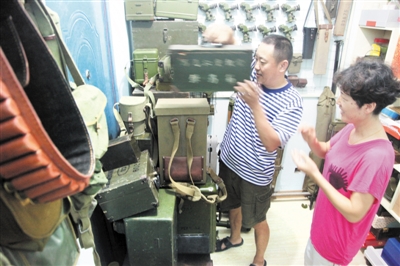 一位普通的市民怎么收藏这么多军事物品,又搞起了“军博馆”?很是令人费解!说起收藏军事物品,王其龙说:“主要是小时候,参加过淮海战役当过运河支队队员的父亲、二大爷还有母亲他们讲述抗战的故事太多了,凡是与战争有关的军事物品我都感兴趣,上小学时看到其他小朋友玩的弹壳,我宁愿饿着肚子,也要千方百计用手中的饼把弹壳换来收藏。”特别是王其龙上技校期间,《海湾战争内参片》、《军事科学二战资料》等军事知识像个粘合剂黏住了他的大脑,“办个军事博物馆”的想法在他心中油然而生。