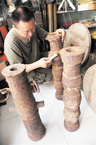 “明代神威二将军的守关炮、抗战军事指挥刀、高古兵器及老山前线战士用弹壳做的和平鸽”……满屋子的军事物品,琳琅满目,这是在市中区香港街王其龙家里看到的一幕,他说,因为展室太小,还有好多堆在了地下室。