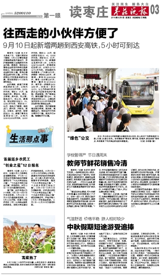 晚报讯 (记者 焦兴田 马高超)7日,记者从枣庄站了解到,9月10日零时起徐兰高铁郑徐段开通运行,京沪高铁将随之实施新的列车运行图。调图后,枣庄站办理客运业务的列车将出现新的变化,枣庄站新增办理客运业务列车21趟,取消办理客运业务列车21趟。对于向西部出行的旅客将更加快捷,枣庄到西安5个小时内便可到达。