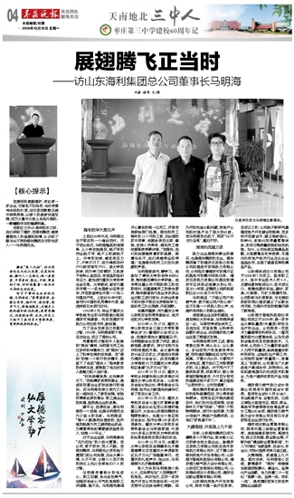 在枣庄三中60周年校庆之际,我们来到了潍坊,在海利集团,感受着海利人的温暖和热情,认识和了解与众不同的海利集团及它的当家人——马明海先生。