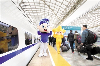 昨日,我省首条城际高速铁路——青(岛)荣(成)城际铁路全线开通运营,铁路正线全长302.757公里,沿线设烟台、威海、荣成等14个车站。随着青烟威荣城际铁路全线贯通,烟台、青岛、威海三城正式开启“同城”模式。图为昨日上午7点40分,由青岛开往荣成方向的C6502次动车在青岛站整装待发。 (新华社)