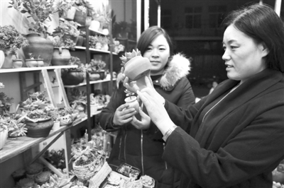 近几年流行种植“多肉”植物,赵女士也特别喜欢,便尝试种植了一些。而今赵女士把爱好变成了事业,她在山亭新城农贸市场开起了多肉植物店,生意好的时候一天销售额达千元。 (记者 王震 摄)