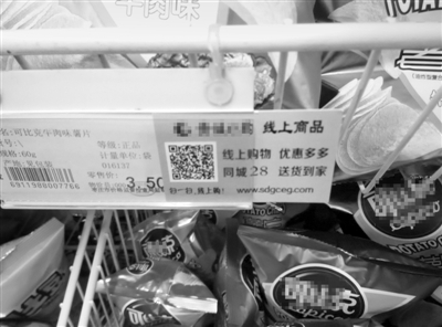 除了装修升级,记者18日在薛城区永兴路上的一家大型超市内看到,货架上商品的价签上面除了价格以外,还插有一个写着“线上购物优惠多多”的标签,一旁还有一个二维码。记者用手机扫描该二维码后,发现这是该超市的微信公众号,在公众号内有该超市的线上商城。不仅如此,关注该公众号后该超市会不定时向消费者发送一些特价商品信息的推送。
