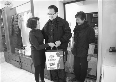 1月24日,银狐皮草公司总经理史华(左)特别的高兴,山亭区北庄镇的孟凡军来看望她了。从小学直到读到哈佛博士研究生,这是史华当代理妈妈资助的100多名孩子中学历最高的一个。孟凡军对史华“妈妈”说,过完年他就到清华大学工作了,他永远忘不了“妈妈”这些年来对他学业的大力资助。