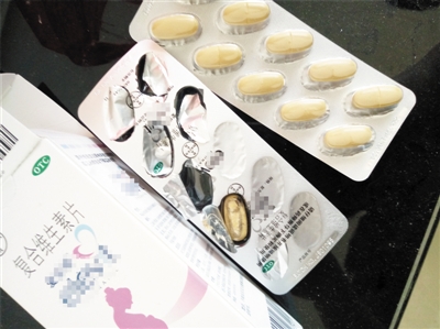 杨女士如今已经怀孕两个多月了。从怀孕之前的三个月备孕期开始,她便一直服用该品牌复合维生素片,该药每盒三板,每板十片,每一片都密封在铝箔里。她每天服用一片,到今年2月,她已经连续服用了五个多月了,其间一直没有发现什么问题。1月27日,杨女士从位于市中区公胜街的一药品超市购买了一盒孕妇用维生素,上面显示的保质期一直到2017年9月29日。2月11日中午,杨女士抠开一片药准备吃时,却被这片药吓到了。