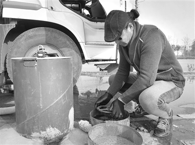到达补水点,用水带将车辆和补给点对接,而后又从驾驶室拿下一个小桶,利用水带滴落的水涮了几下拖布,便开始刷车。虽然这是每天工作中必须进行的步骤,但在整个过程中,他都是那么一丝不苟。“有时候朋友也给我开玩笑,说你这清扫车就是扫垃圾的,你刷这么干净干啥?可我总觉得‘清洁路面,先清洁自己’,把车刷得干干净净的,自己看着也舒服。”叶师傅说。没过多久,车辆已经擦洗干净,水灌满之后,叶师傅便开始了一天的工作。