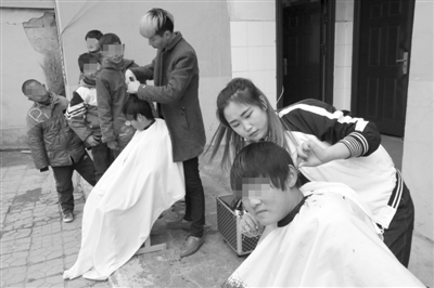 2月28日,山亭区职业学校美容美发专业的师生们,来到枣庄市西集镇第十一中学,为学校特殊教育班的孩子们义务理发,据了解,特殊学校成立以来,这支爱心服务队每月定期来到特殊教育学校给孩子们义务理发。 (记者 王震 摄)