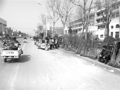 6日上午,记者来到市中区西昌路上看到,道路两旁成了苗木销售市场,桂花、丁香、红豆杉、茶花、铁树等各类苗木一应俱全,在沿路边一字摆开供顾客随意挑选。各个种类的树苗让人眼花缭乱,受到市民的青睐,记者看到,不时有市民来摊位前仔细挑选购买刚刚露出嫩芽的小树苗,让花卉苗木商户在这个春光灿烂的时节赚了一把。