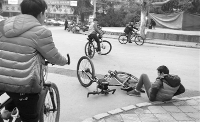 近日,几名少年骑着自行车,在市中区立新小区内快速行驶。其中一名少年在骑行中不慎摔倒在地。据小区居民介绍,每逢周末或下午放学后,总有不少孩子骑着自行车或电动车在小区内乱窜,存在安全隐患,希望家长和学校能加强安全教育。