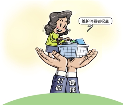 ◀让群众花钱消费少烦心、多舒心被写进今年的政府工作报告,这意味着,维护消费者权益不再局限于“亡羊补牢”,而是要做好“两手抓”:一手抓好打击假冒伪劣商品,一手从源头抓好产品质量提升。 (新华社)