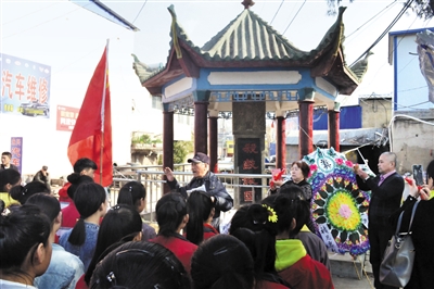晚报讯 (记者 孔浩 摄影报道)4月1日,八路军115师运河支队的部分后人相聚在台儿庄区涧头集镇,成立了运河支队历史研究会,并在1946年运河县民众为褚思惠烈士所立的“杀敌报国”碑前,向运河支队抗日先烈敬献花圈。