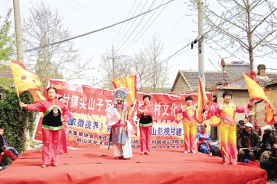 晚报讯 (记者 王震 摄影报道)河南豫剧《穆桂英挂帅》一亮相,就让坐着马扎,或倚着三轮车、自行车,或坐在路边石头上的村民听得津津有味,看得如痴如醉。4月9日,市中区齐村镇组织尖山子村、柏山村庄户剧团到朱子埠村义演。
