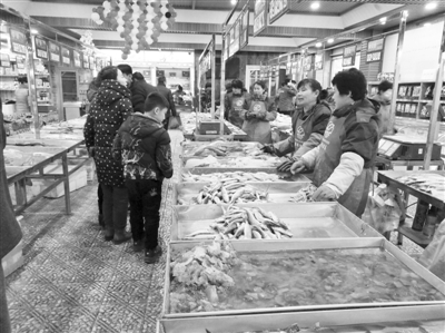 12日,记者走访市中区新华市场东头的海鲜市场获悉,十天内,大黄花鱼的售价每公斤涨了6元,预计价格还会持续走高。当天,前来购买海鲜的顾客并不多,商家们都在忙着拉客。