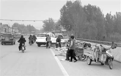晚报讯 (记者 刘一单 摄影报道)“滕州市漷河大桥桥面上摆摊占道的问题越来越严重了。天气一好,桥上都是占道经营的,偶尔有行人停下来买东西,过往车辆从人群中穿过,存在严重安全隐患。”近日,家住滕州市的于女士向本报反映。