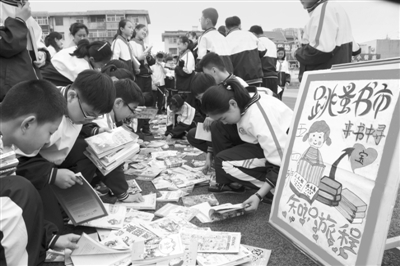 4月20日,在“世界读书日”来临之际,市中区建设路小学“跳蚤书市”开市,不但唤起同学们读书的兴趣,还锻炼了大家的经营意识。