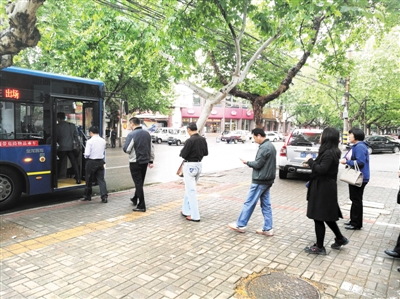 5月4日,记者在市中区振兴路市委家属院公交通勤站点看到,在没有栏杆,没有提示、监督的情况下,不少准备坐通勤公交前往新城上班的市民,在此自觉排队,依次乘车。 (记者 李靖 苏羽 摄)