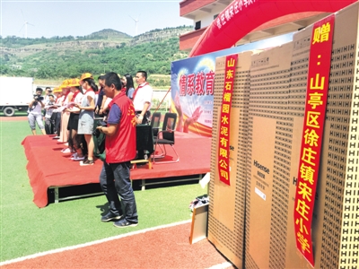 日前,峄城石榴园水泥公司爱心企业家来到山亭区徐庄镇宋庄小学,捐赠了3台立式空调及学习、生活用品,总价值4万余元,希望孩子们能度过一个凉爽的夏季。