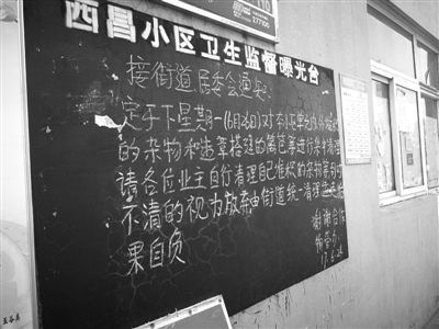 24日,在靠南面“西昌小区卫生监督曝光台”小黑板上,写了一则提醒,街道工作人员将于6月26日对该小区内外堆积的杂物和违法搭建的篱笆等进行集中清理,请各位业主自行处理堆放的杂物等。从小区大门经过的业主看到黑板内容有更新,纷纷停下脚步。“住进这个小区以来,每次经过此处都会习惯性抬头往黑板上看一看。”家住该小区的一位年轻人说,这块黑板上经常有一些跟业主们息息相关的通知或提醒,还时常更新。虽然微信等社交工具传播速度更快一些,但即便像他这样的年轻人,也是喜欢这种看似有些“老式”的提醒方式,让人感觉非常舒服。另一块小黑板上,还留着几天前物业工作人员贴的一则通知,一位上了岁数的老先生正在此看该通知。“都成习惯了,每天在小区遛弯儿的时候都会特意跑过来看看有什么通知。虽然物业工作人员有事也会当面通知我们,但写在黑板上,这种感觉还真是不一样。”这位老先生说。