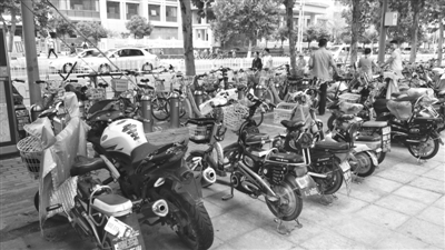 “这里并不是停放电动车专门划定的区域,只是附近上班的人随意停在这的,时间长了就越停越多,慢慢的就把公共自行车站点给包围了。”路过的四方城小区居民张先生说。
