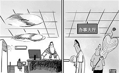 天气炎热,江西彭泽县社保局办事大厅里“冰火两重天”。日前,据前去办事的网友反映,大厅被玻璃隔开为办公区和等候区,玻璃内办公区有5台空调、7台风扇,而玻璃外的等候区,连个风扇都没有,“简直就是蒸笼”。该社保局负责人在当地媒体采访时回应,他们将在等候区安装两台空调。(7月28日九江新闻网)