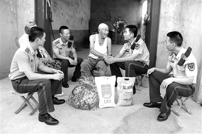 建军90周年前夕,武警枣庄支队一大队二中队官兵来到永安镇慰问参加抗美援朝的复退老军人。今年86岁的唐金培看到武警战士,兴奋之余回忆起了当年的战争岁月。上等兵陈明亮说:“每次听老前辈们的故事都满怀敬意,祝老军人建军节快乐,幸福安康。” (记者 刘一单 通讯员 马怀江 摄)