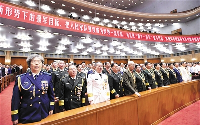 庆祝中国人民解放军建军90周年大会昨日上午在北京人民大会堂隆重举行。中共中央总书记、国家主席、中央军委主席习近平在会上发表重要讲话强调,人民军队的历史辉煌,是鲜血生命铸就的,永远值得我们铭记。人民军队的历史经验,是艰辛探索得来的,永远需要我们弘扬。人民军队的历史发展,是忠诚担当推动的,永远激励我们向前。中华民族实现伟大复兴,中国人民实现更加美好生活,必须加快把人民军队建设成为世界一流军队。我们要不忘初心、继续前进,坚定不移走中国特色强军之路,把强军事业不断推向前进,努力实现党在新形势下的强军目标。 (新华社)