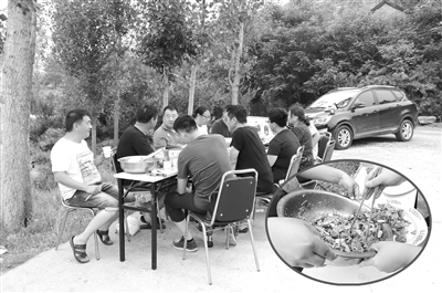 晚报讯 (记者 孔浩 摄影报道)夏日炎热难耐,很多人都选择在家中凉快。但家住市中区解放路一小区的居民王先生,却趁着前几天气温稍有降低,买了羊肉,招呼十几位朋友一起去郊外野炊喝伏羊,度过了一个有意义的周末。