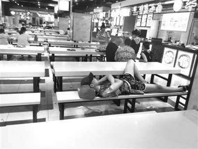 一位工作人员表示,他们看到“蹭凉族”一般也不会赶人,毕竟都是客人,“我们这里覆盖了无线网,有的客人坐着打开电脑,一杯可乐或者其他饮料能坐好几个小时。”