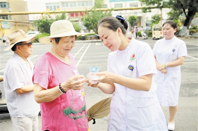 当天的绵绵细雨给炎热的夏季带来难得的清凉,醒目的宣传海报,吸进了众多的辖区居民前来询问。医护人员为他们测量血压、血糖、身高、体重,详细讲解限油壶限盐勺的使用,进行用药及健康生活方式指导,讲解建立居民健康档案、记载健康信息的意义,尤其是实行家庭医生签约服务为居民健康带来的保障意义等等,同时还讲解了日常医疗卫生知识、疾病防治知识、健康生活习惯等。