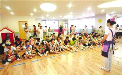 7月31日,市中区某早教机构聚集了许多孩子和家长。该早教机构工作人员介绍,早教主要针对0至3岁婴幼儿运动发育、语言发育等方面,包括音乐、育乐、艺术等课程。音乐课以唱歌、跳舞为主,育乐是使用道具做游戏等,艺术则是通过手工材料画画等。在早教机构体验课程教室门口,家长王先生说:“我家孩子在这儿已经上了近半年课了,一周两节课,每种课基本都体验过来了,就希望孩子能通过早教多学些知识。”“我女儿一岁多,现在开始上早教已经不早了。”家长韩女士说,“身边朋友家的宝宝五六个月就开始上早教班了,可不能让孩子输在起跑线上。”