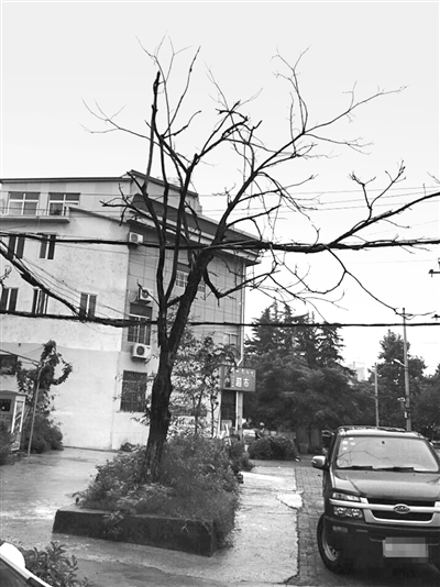 朱先生所反映的这棵枯死的椿树,位于立新小区31号楼的东头路旁。朱先生说,原来这棵树枝繁叶茂,有六七米高,一两年前不知什么原因忽然枯死。现在整个树干都干枯了,立在路边上很是大煞风景。这棵树下是一片空地,经常有居民将私家车停在树下,如果大风将干枯的树干刮断,肯定会将车辆砸坏,给车主造成损失。这里还是居民出行,孩子上下学的必经之地,枝干一旦折断砸到了行人的身上,那问题就大了,后果将不堪设想。另外,这棵树的枝干部位,还有不少的线缆在此扯过,如果枝干断裂落下,也将会对线缆造成损害。