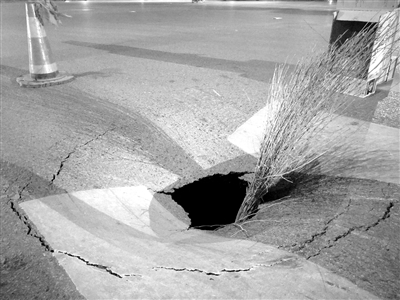 近日,在市中区矿区街道办事处附近一十字路口,路面突然出现塌陷。附近居民表示,塌陷可能与最近频繁降雨有关。相关部门表示会尽快制定修复方案,还市民一个安全畅通的道路。 (记者 王震 摄)