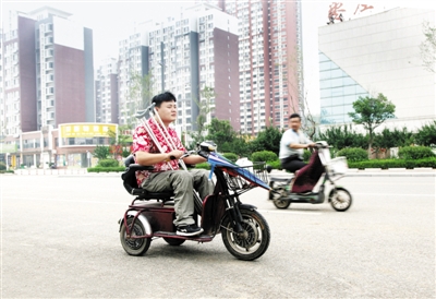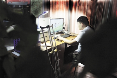 这位小伙儿就是张振杨,上世纪90年代出生在临沂郯城的一个小山村里。1岁的时候,因病未得到及时治疗造成了双腿残疾。七八岁的时候,小振杨看着姐姐哥哥们都去上学,他很羡慕。于是母亲就天天背着他到村里的学校上学。学校里,老实内向的他学习十分用功,成绩也一直名列前茅。初中要到外村去上,倔强的张振杨就开着手摇车坚持上学。渐入青春期的他自尊心越来越强,生活的不便,同学的目光,让他变得自卑,心理压力也越来越大,甚至产生了厌学情绪。后来,坚强的他暗下决心,一定要闯出一番名堂来。