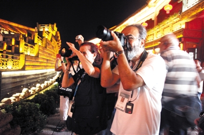 8月10日,台儿庄古城迎来了来自世界各地42个国家的140多位摄影师。据悉,10日至11日,第五届世界摄影大会走进枣庄,走进古城台儿庄,摄影大师们将在台儿庄古城、双龙湖还有运河湿地进行采风摄影。