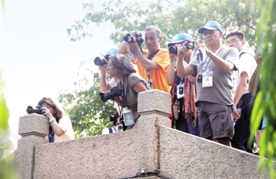 我市作为承办方之一,邀请摄影师们在台儿庄古城、双龙湖观鸟园以及运河湿地进行拍摄。让他们带着各种“长枪短炮”,在10日晚间和11日上午用镜头记录下台儿庄古城的美景,并将我市丰富多彩的传统文化展演、天鹅云集鱼翔浅底的双龙湖和“接天莲叶无穷碧,映日荷花别样红”的运河湿地美景,用相片向全世界展示。