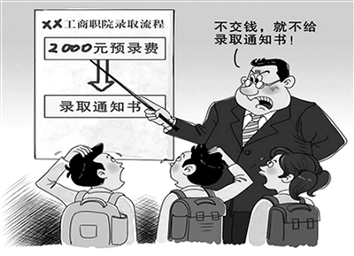 日前,有微博曝光,湖南工商职业技术学院要求高考统招生缴纳2000元“预录费”,规定时间内不交费的学生将不被录取,且8月19日之后才能办理退档,而当天正是同批次学校征集志愿最后一天,意味着考生将无法再填志愿。对此该校某老师解释,往年有被录取的学生开学未报到,影响了录取指标,所以用“预录费”确定准新生的数量。