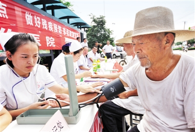 25日,是全国首个“残疾预防日”,山亭区残疾人联合会与该区骨伤医院联合,组织医务人员在山城街道集市开展义诊活动,宣传常见的致残原因及预防措施。 (特约记者 李宗宪 摄)