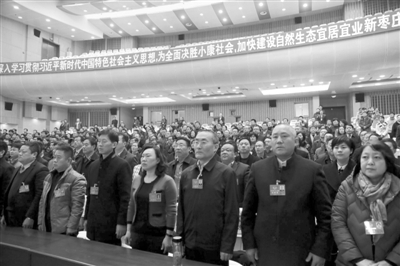 大会在庄严的国歌声中胜利闭幕。 (记者 王震 摄)